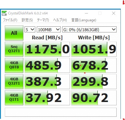 *CrystalDiskMarkはメーカー公称値の確認や、保有システムでの確認ですので目安程度。必ず大容量のファイル転送確認をするようにしています。