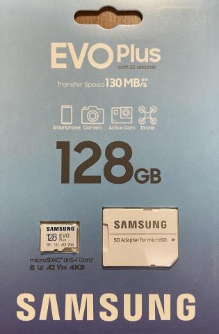 2021年発売のサムスンのmicroSDXCカード、EVO Plusシリーズの128GBです。