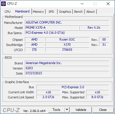CPU-Zでは何故かBus Specs.でPCI-Express 4.0と表示されますが、X370は仕様上PCI-Express 3.0までのサポートの筈です。CPU側の対応バス性能をそのまま表示してしまっているのかも知れません。