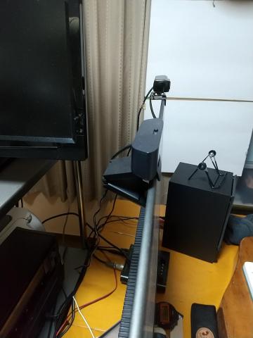 専用のスピーカーに繋ぎマイクも外部マイクを使用してインターフェースでコントロールします。
