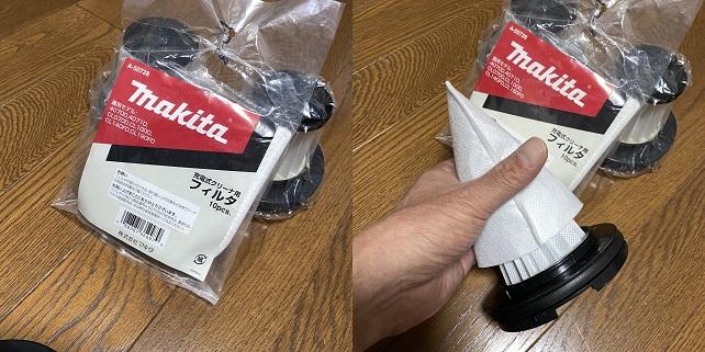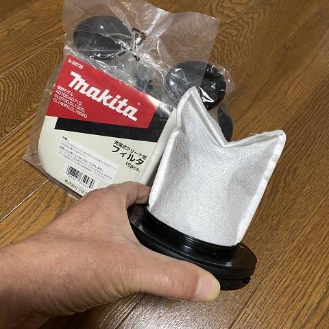 フィルター掃除が簡単な様に、私はマキタ掃除機用の紙フィルターを被せて使用しています。