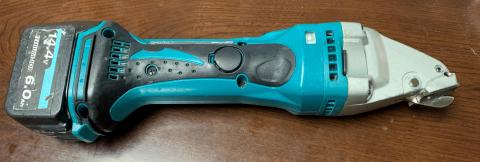 板金に使う道具です、板金と言えばニブラが有名ですが、ニブラが金属を囓りきっていく感じと比較して、シャーは3枚の刃を使ってハサミで切っていく感じになります。