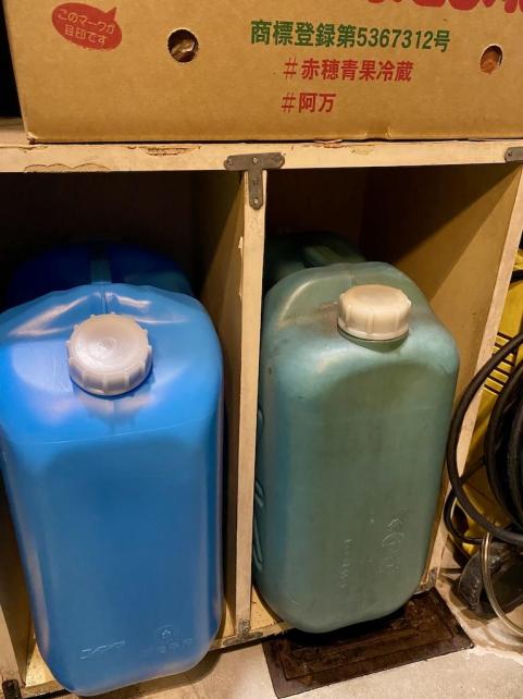 2つの青いポリタンクをつかっていましたが、どうやら そのひとつから微妙に漏れがあるようです
