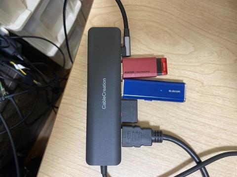 これでも一応両方のドライブを認識していますが、USBポートの間隔が狭いのは不満点です。