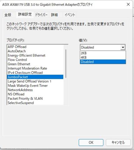 LANはASIX AX88179でジャンボパケットは最大4KBまで。