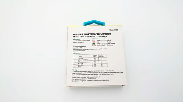 充電式では RCR123A という 3.7V 規格のものは存在するのですが、そちらは充電できないという記述があります。電池本体の方は、「3.6Vまで」と書いてありました。