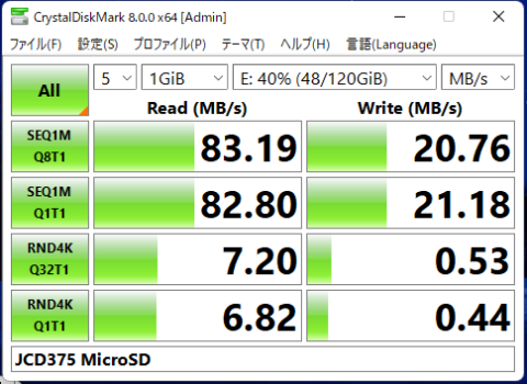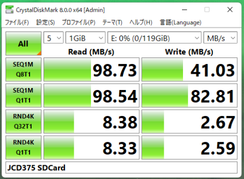 カードリーダはSDとMicroSDは排他で手持ちのSD、MicroSDに対応した読み取り速度です。