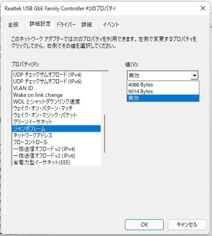 LANアダプタは、Realtek製コントローラで9KBのジャンボパケットに対応しています。