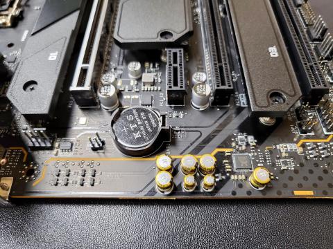 オーディオ回りは、ゲーミング系マザーなら当たり前になってきている他回路と切り離されたユニットになっていて、黄色いシールドがカッコいい。