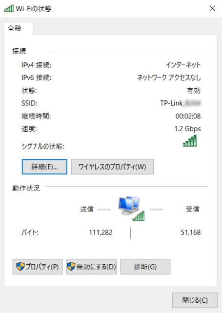 無線は、仕様通り、11ax対応で、1.2Gbpsで接続が可能です。