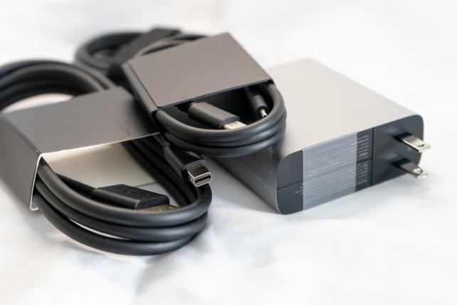 ケーブル・ACアダプタです。ACアダプタはUSB-C対応ですが、あいにく直付けでした。他のケーブル等は使えないようになっています(USB PDは全系統で設計がしっかりしていないと冗談抜きで燃えるからでしょうか)。