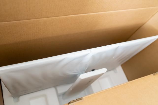 スタンドは外せない仕様なので、梱包時からこのような形になっています。