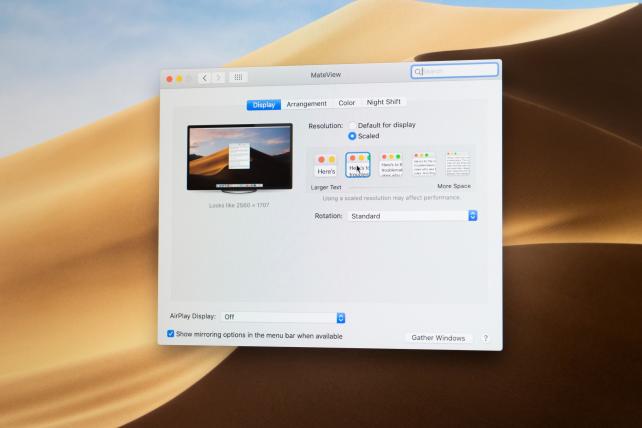 Macと接続したときの画面。WQXGA+とでも呼ぶのか、150%スケール表示がちょうど小さすぎず野暮ったくなく、ちょうどいい塩梅です。