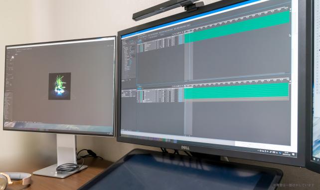 既存の30インチWQXGAと比べても遜色ありません。実寸的にはわずかに MateView のほうが小さいか?というくらいで、ピクセル的には MateView のほうが大きいです。イラストレーターは資料等を見ながら、After Effects ではタイムラインとプレビュー画面を分離できます。