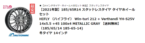 実際、サイズと車種を指定して検索して見つけた一番安いセットを購入しようとしたら、運悪く品切れとなってしまっていたので、その次に安い商品をAUTOWAYさんが出品していましたので、購入することにしました。