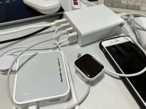 残りのUSB Type-AにApple Watch充電ケーブルや