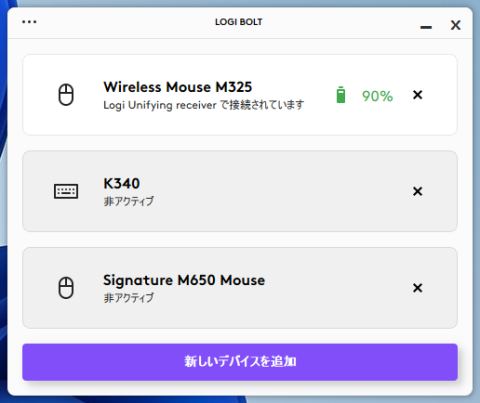 一度 Bluethooth 接続すると Logi Bolt とのペアリングが切れるようです。