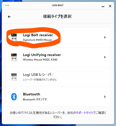 「Logi Bolt reciver」をクリックします。