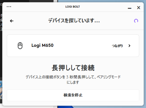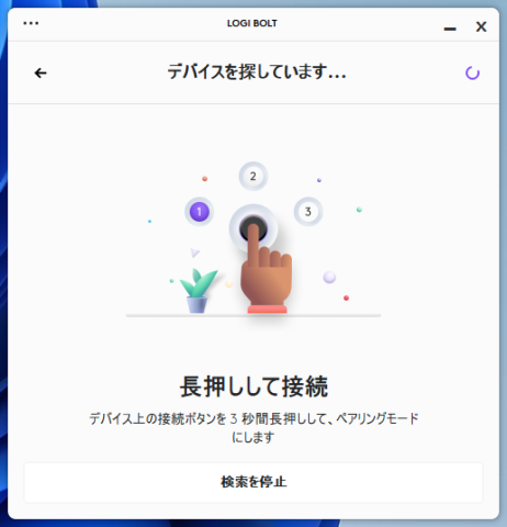 ここで暫く待っていると Logi Bolt でペアリングされることもあります。