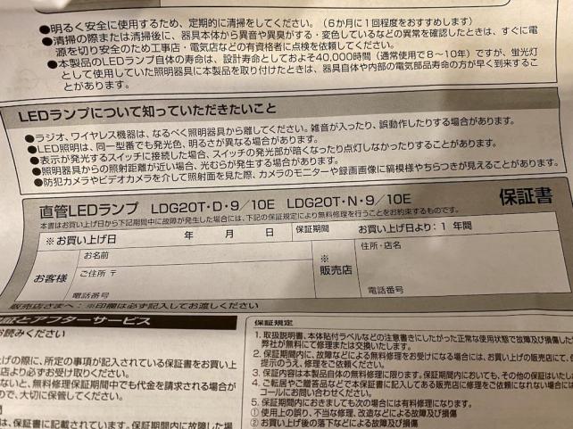何十年も使っている飲食店の厨房内、レンジフード内に設置していた20W型直管蛍光灯を