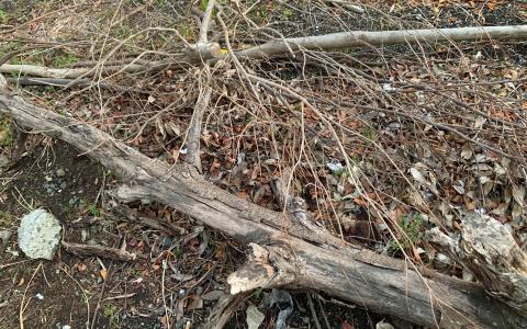 本来は植木ばさみで切って運んで捨てるのですが、特にこの場所は放置でも問題ないので、大きな幹以外はなんとかしたいところです