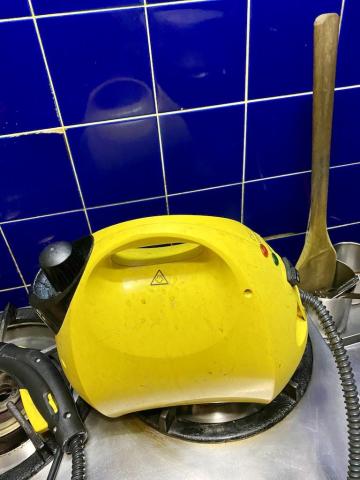 施工前にはスチームクリーナーで十分に油分を取り除く必要があります。