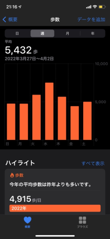 (通勤は車なので、グラフのほぼ全部仕事での歩数です)