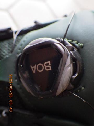 ここを回して締め BOAとロゴの入った部位を引っ張ると