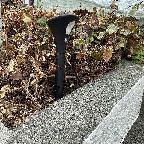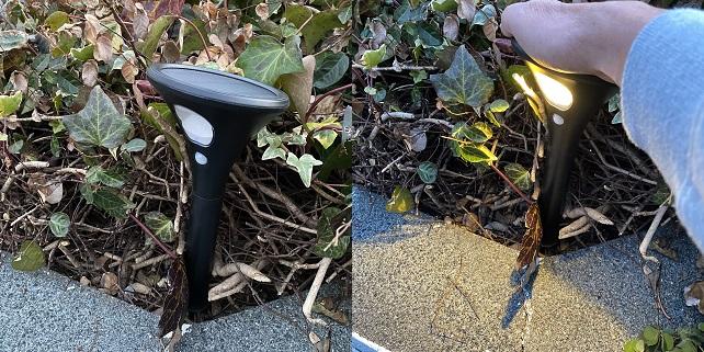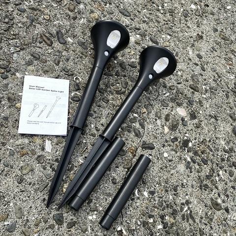 上から照らすのでなく、足元を照らしてくるタイプです。歩く場所の脇に突き刺すタイプですね。