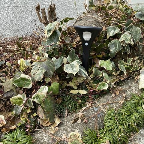 太陽光使った人体検知式の照明も考えたのですが、あのタイプって上側から照らすタイプが多いのと、何よりうちは玄関までに取り付けれるような壁がありません。足元だけでも照らしてくれる物でセンサー式、太陽光で充電できる物を条件に探しました。
