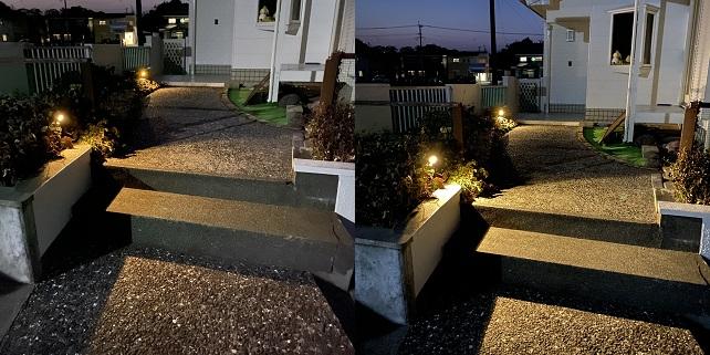 自宅の駐車場は玄関まで20mくらいありまして、途中2段ほどの段差があるのですが夜帰ってきたとき暗いとつまずきそうです。たまに孫の顔を見せに息子夫婦も夜になると帰ってくるのでいつか誰かが転ぶんじゃないかと心配していました。孫も大きくなると庭に遊びに出るでしょうし何かないかと探してきました。