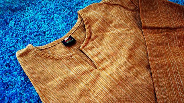 同じ生地の上着も売っているので合わせることができます。こっちは普通の Tシャツとして使えます。多少エスニック感を感じるのですが、またそこが異国情緒があって良いですね。