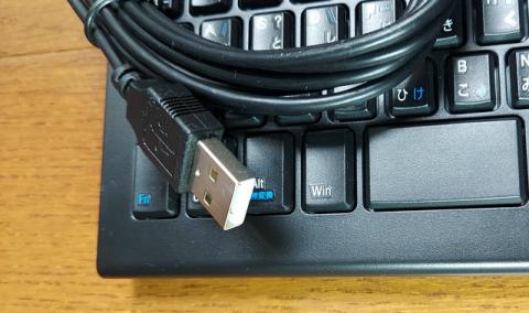 今回のCYBER・USBキーボード、USBケーブルでの有線接続になってます。