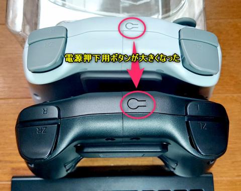 また、コントローラー上部にある電源押下用のボタンも大きくなって、電源ボタンが押しやすくなっています。