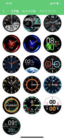 文字盤の変更絵柄。9画面ほどあります。多すぎです。