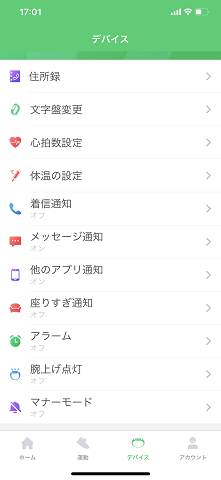 座りすぎ通知は、初期値はONなのでOFFを推薦します。