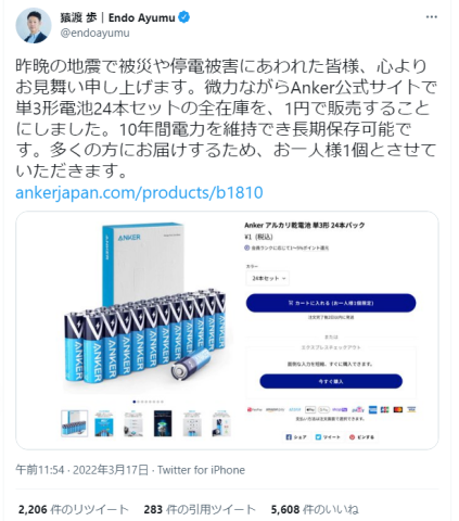 AnkerJapanのCEO 猿渡 歩氏のツイートにこういう告知が出ました。