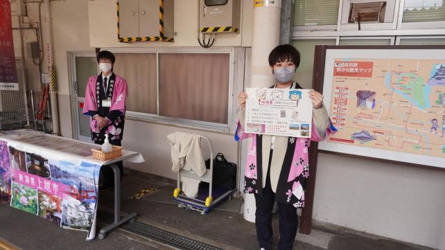 桜海里運行日の4月5日は平日だったので上越市の観光課の職員さんからの出迎えもありました。