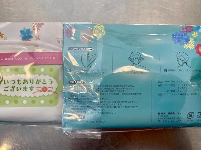 保険の外交員にもらった サージカルマスクとウェットティッシュのセット