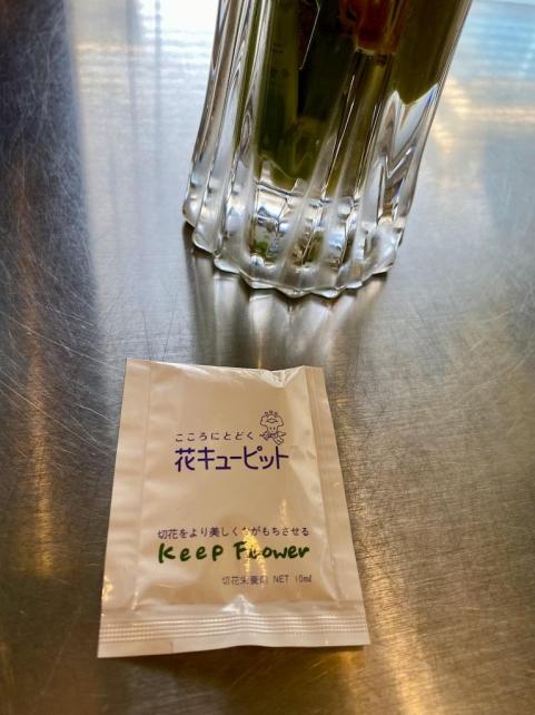 片方は 朝夕2度の水交換 片方はキープフラワーを使い 水を足します。