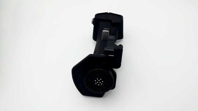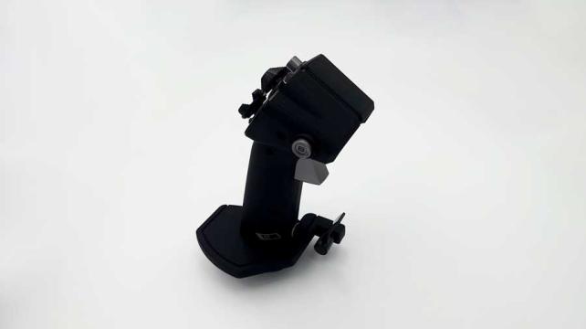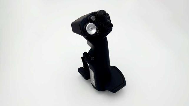 ジョイスティックを横から見たところ。トリガーの他にサイドボタンや小指の部分にもトリガーがあり、多彩な入力を楽しめます。
