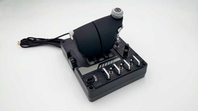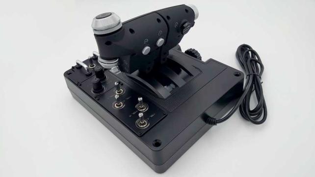 側面には十字ボタンやアナログジョイスティックもあり、このスロットルレバーに集中してコントロールを割り当てることもでき、右手はキーボードを叩いて操作するなどのスタイルもきできます。