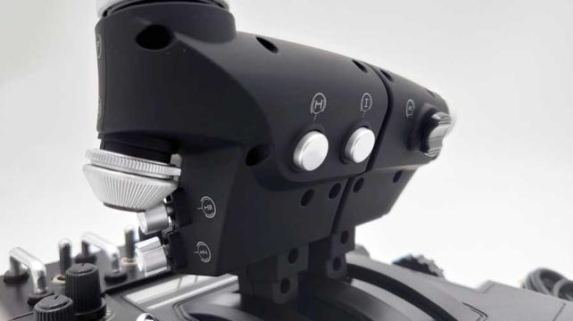 スロットルレバーも大きめで、握りこむには相当の手の大きさが必要です。スロットルの前にもボタンが用意されているのですが、僕の指だとここはぎりぎり届かない位置のため、武器スイッチとして使うには難しかったです。