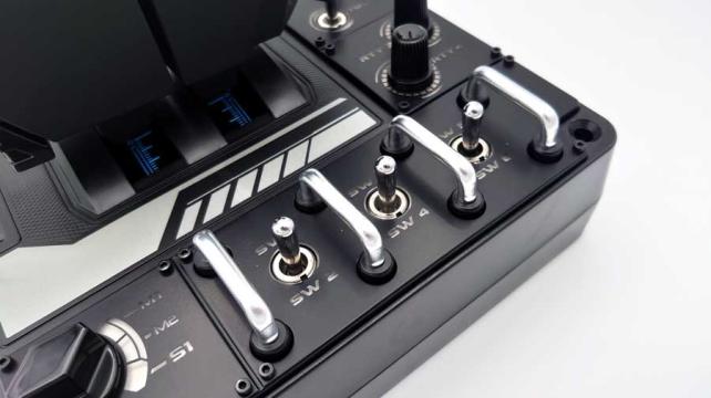 スロットルレバーには上下にふたつロータリースイッチが付いており、ここも方向系の操作を割り当てるなどしても便利。僕はメックの上半身の回転方向を割り当てようと思ったのですが、設定をむさぼってもできなくて不完全燃焼。