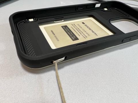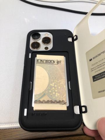 紙幣をこのiPhone背面が見えている窪みに紙幣の上辺のみを乗せるようにします