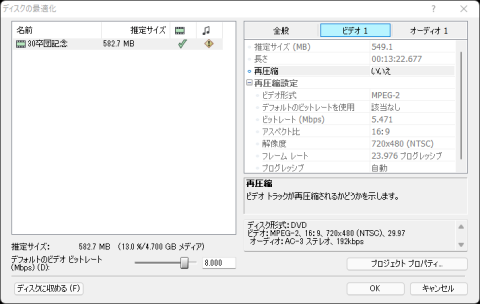 2.基本的に再圧縮はないが、入りきらなかった場合、ビデオ・オーディオに対して再圧縮する・しないを選べるのだ。メディアに入るように自動的に圧縮率を設定できるのもいい。