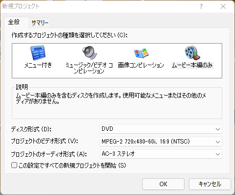1.メニューも何もないビデオのみのDVD(ブルーレイ)を作れる