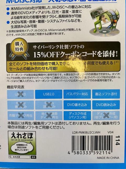 アイ・オー・データ機器のDVD-EC02という外付けドライブを使っておりました。