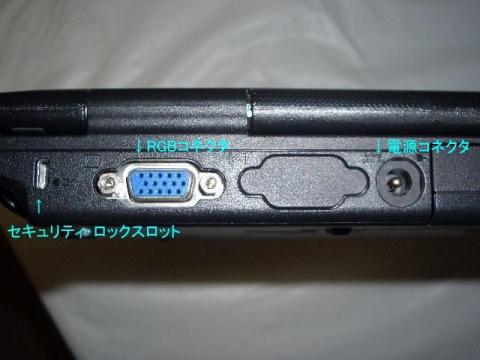背面ポート・左から、セキュリティロック・スロット、RGBコネクタ、電源コネクタ