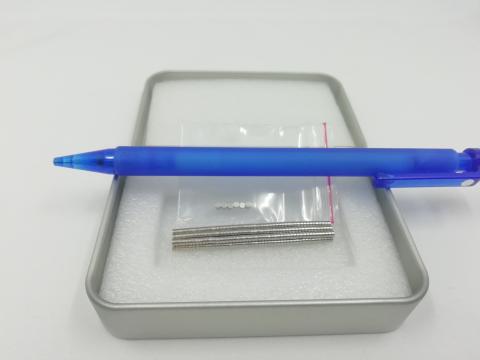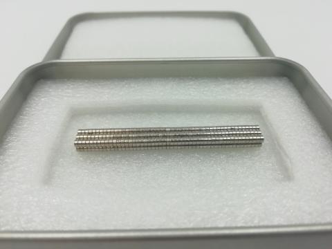 直径2mm x 高さ1mmの磁石で、ニッケル+銅+